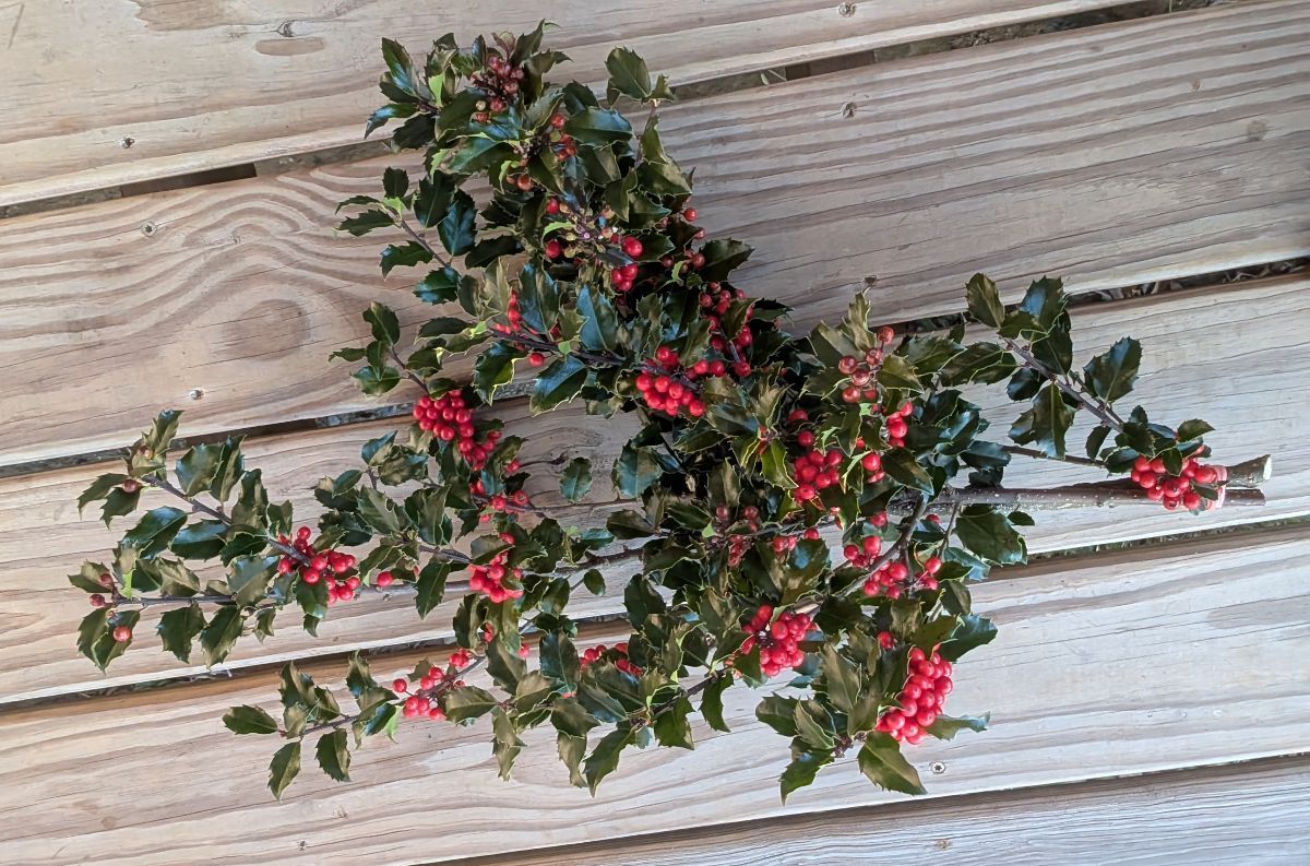 Bunch of holly with red berries for decoration. All greens bunches may vary slightly from picture.