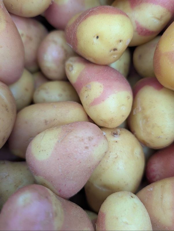 Pinto Gold is an excellent gourmet potato with pink/red skin and yellow spots. The smooth, buttery yellow flesh is delicious. Fingerling potatoes.