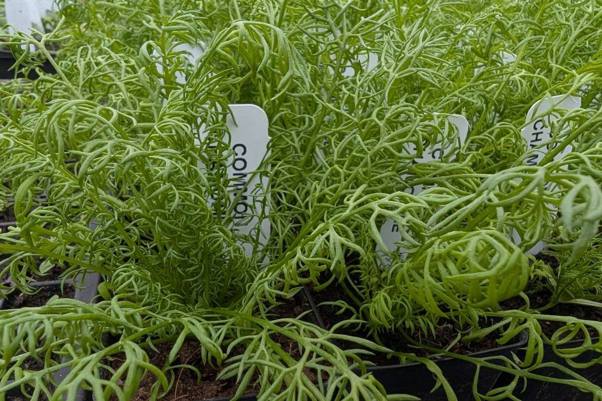 Chamomile plant in a 3" deep pot.