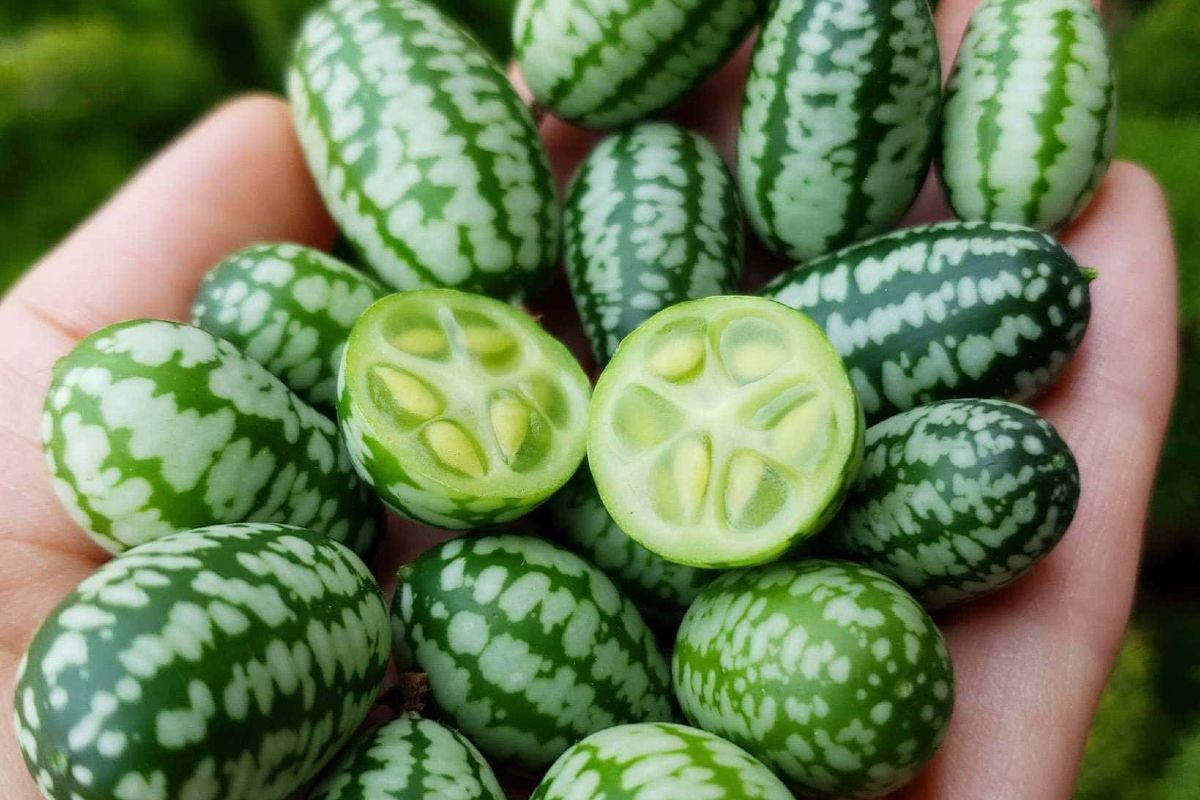 Gorgeous vines produce small, tiger-striped fruit with excellent crunch and tangy, citrus flavor. Also known as Mexican Sour Gherkins, plants produce best in heat. Can be grown in containers with trellising as vines rarely exceed 8' in length. Fruit has excellent flavor and a crunchy texture that holds up well to pickling.
