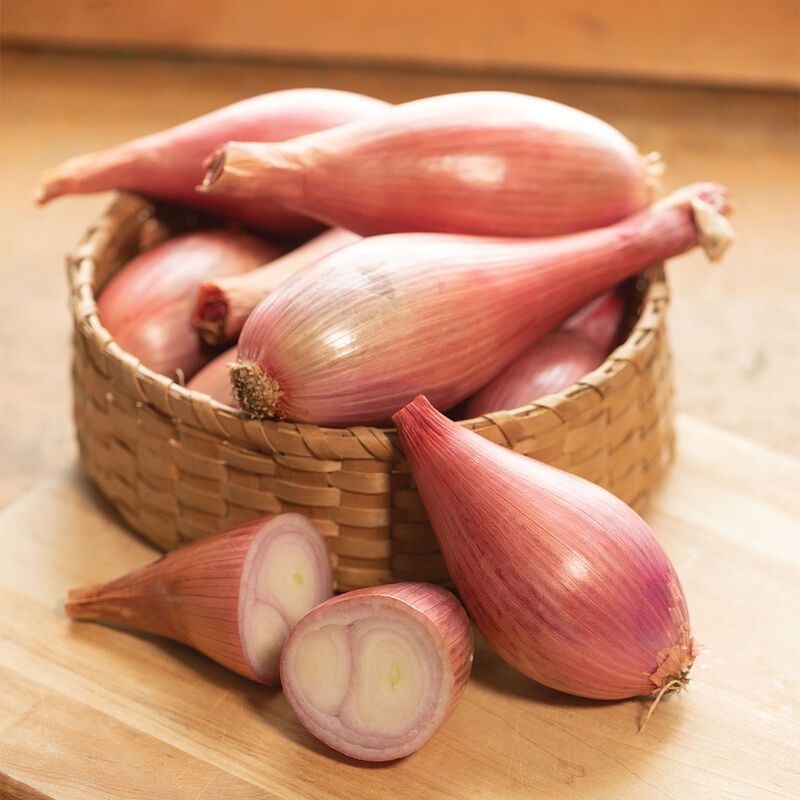 There are multiple shallots in each cell! Gently tease apart the roots to plant in a row or plant in clusters of 2-4. Iridescent peachy pink skin covers uniform bulbs. Also called "banana shallots", these are highly desired by chefs because their elongated bulbs are easy to peel and cut, and their sugar profile is perfectly suited for caramelizing. Long storage potential.