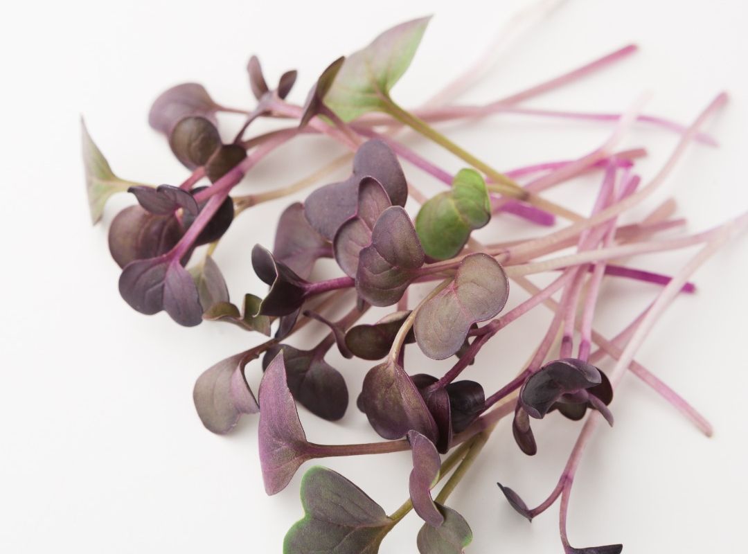 These striking Purple Radish microgreens are a peppery delight for the taste buds. The rosy stems and bright radish flavor bring a spicy flair to your dishes! Add as a refreshing contrast in salads, sprinkle on top of Avacado toast, bagels, pizzas, soups, curries, omelets, stir-fries, pasta, and other dishes.