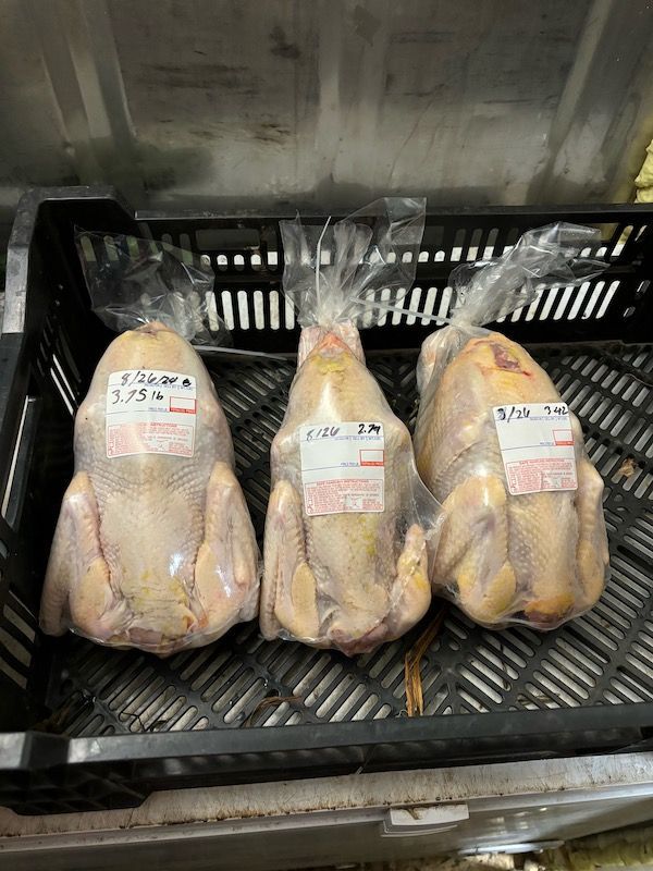 These are freedom ranger Hybrid chickens that have been hatchery bred and hatched, raised, and processed on the farm. They are a fast growing large bodied bird bred to do well on pasture. Their body size is much more comparable to a grocery store chicken (think lots of breast meat) but with a more exceptional flavor and color than with a standard hybrid chicken. These chickens can be cooked in all your standard chicken recipes and require less time and attention in the kitchen.