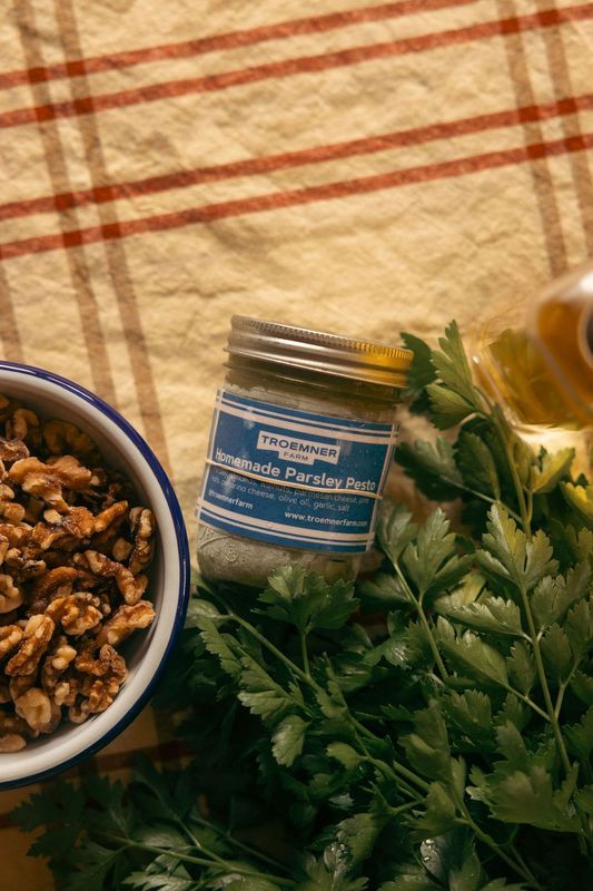 Seasonally: broths, apple cider vinegar, jams, syrups, spreads, pesto, cookies, galettes, risotto, and more.