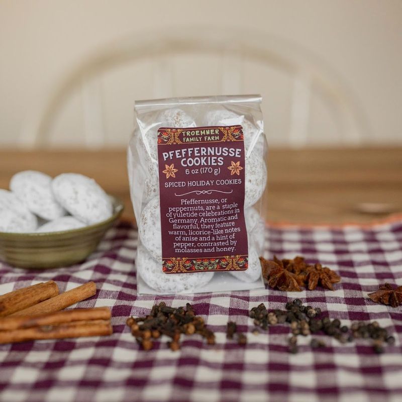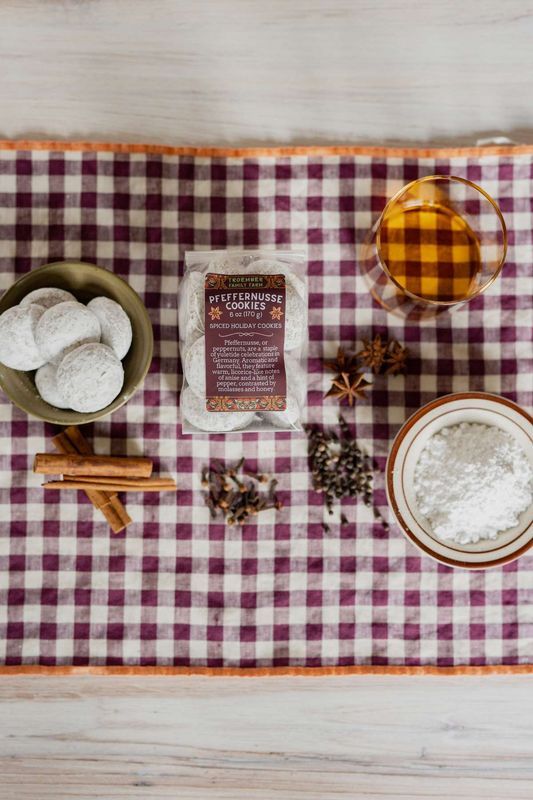 Pfeffernusse — meaning pepper-nuts in German — for their smaller size and crunchy exterior, are traditional German cookies full of satisfying flavor. Not overly sweet but intricately spiced, pfeffernusse cookies feature distinctive notes of anise and pepper, balanced by molasses and honey.