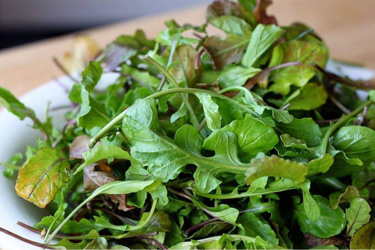 Spicy greens - arugula, mustards, shungiku, chard, asian greens, and sometimes kale go into the mix. We think of this mix as all the fun stuff in a salad mix.