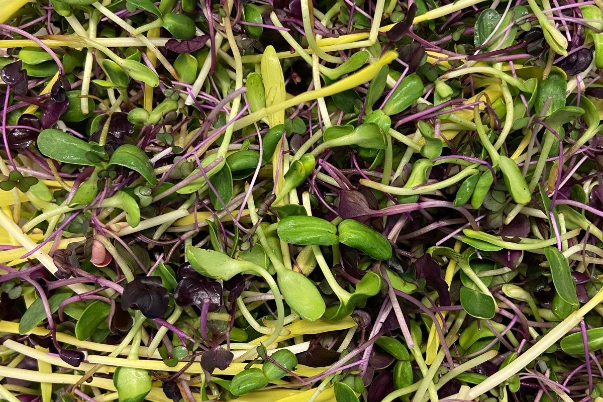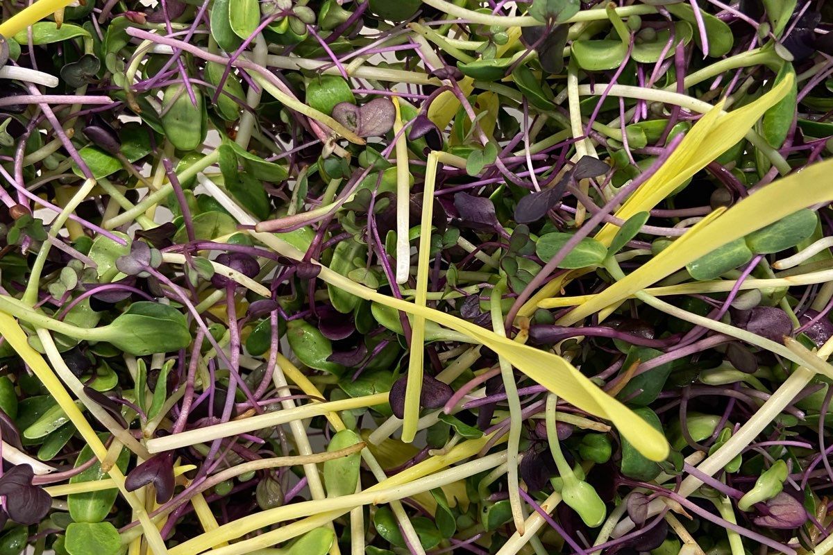 A blend of sunflower, kohlrabi, raddish and corn