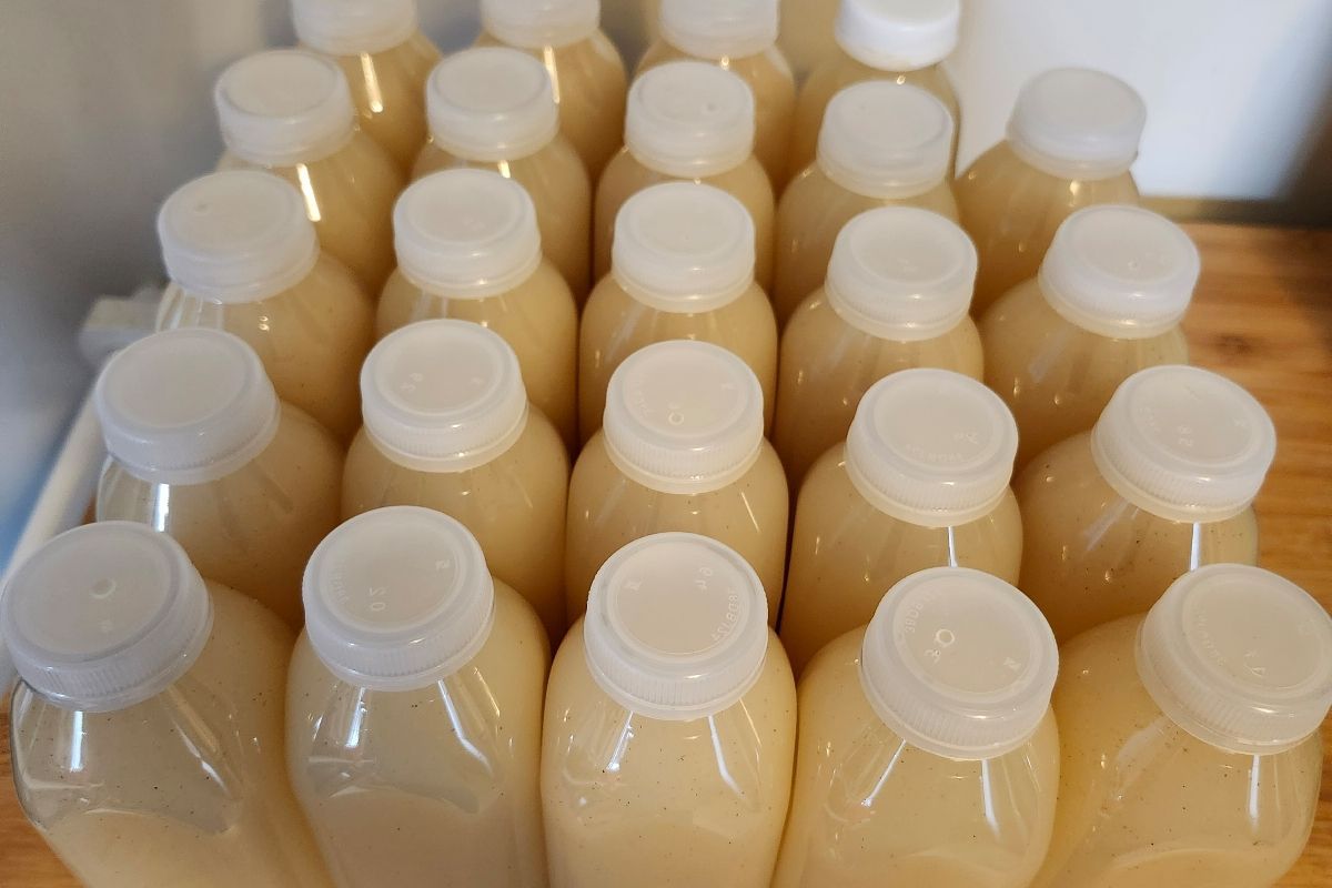 No Sugar Soursop Juice contains no sugar, just soursop pulp, nutmeg, and lime juice. Soursop is a tropical fruit that is aides in digestion, has cancer fighting properties, regulates blood sugars, antioxidant properties, lower high blood pressure,etc. This CSA subscription box is $160/8 weeks. That is 5 bottles of soursop juice.