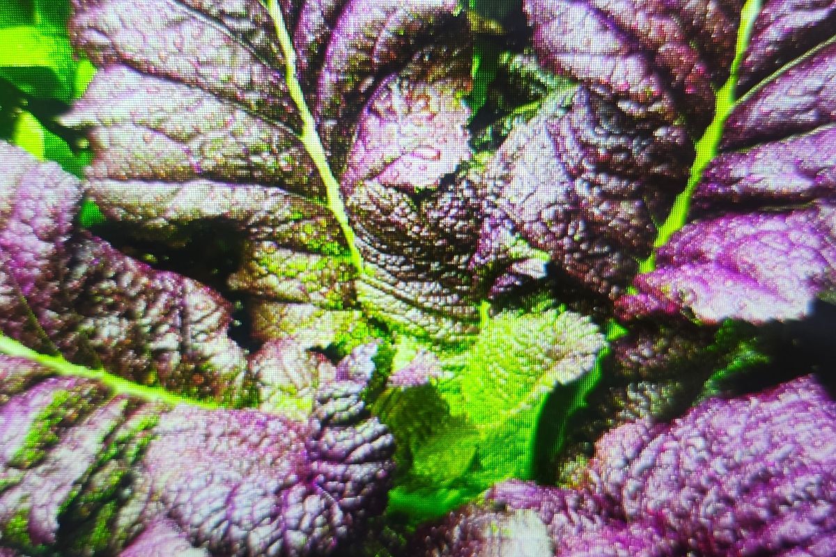 Red mustard is a leafy green that is spicy / peppery to the taste and versatile in salads, stir fries, soups, stews, sauteed. Packed with vitamin A, C, K and high in fiber, calcium, etc