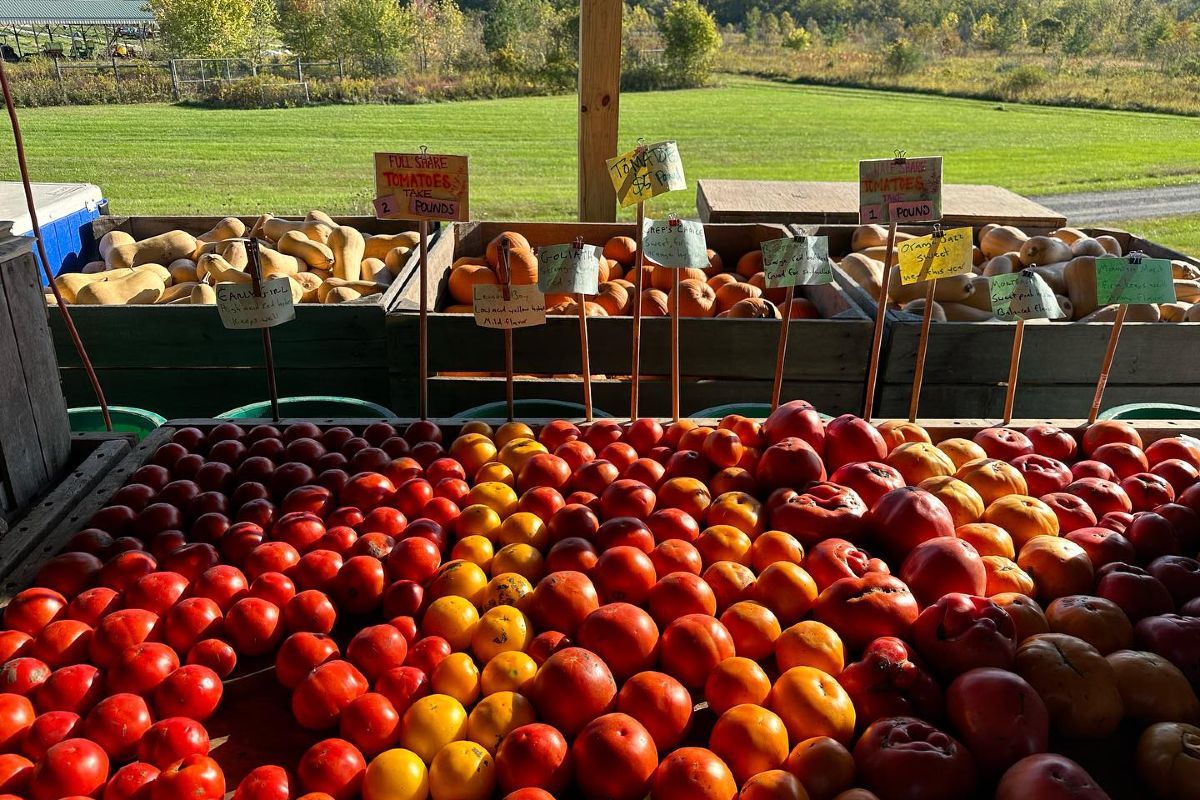 We produce vigorous, pesticide-free Plants in the spring, hosting the Rappahannock Plant Sale the first Saturday in May. We sell Spring, Summer, and Fall vegetables, herbs, and flowers directly on the farm and at farmers markets in Arlington VA and Takoma Park, MD, April-November. We have an on-farm CSA subscription program with pickups Thursdays from June-October, as well as a self serve pickup for walk up on-farm customers at our green barn in Sperryville, Virginia.