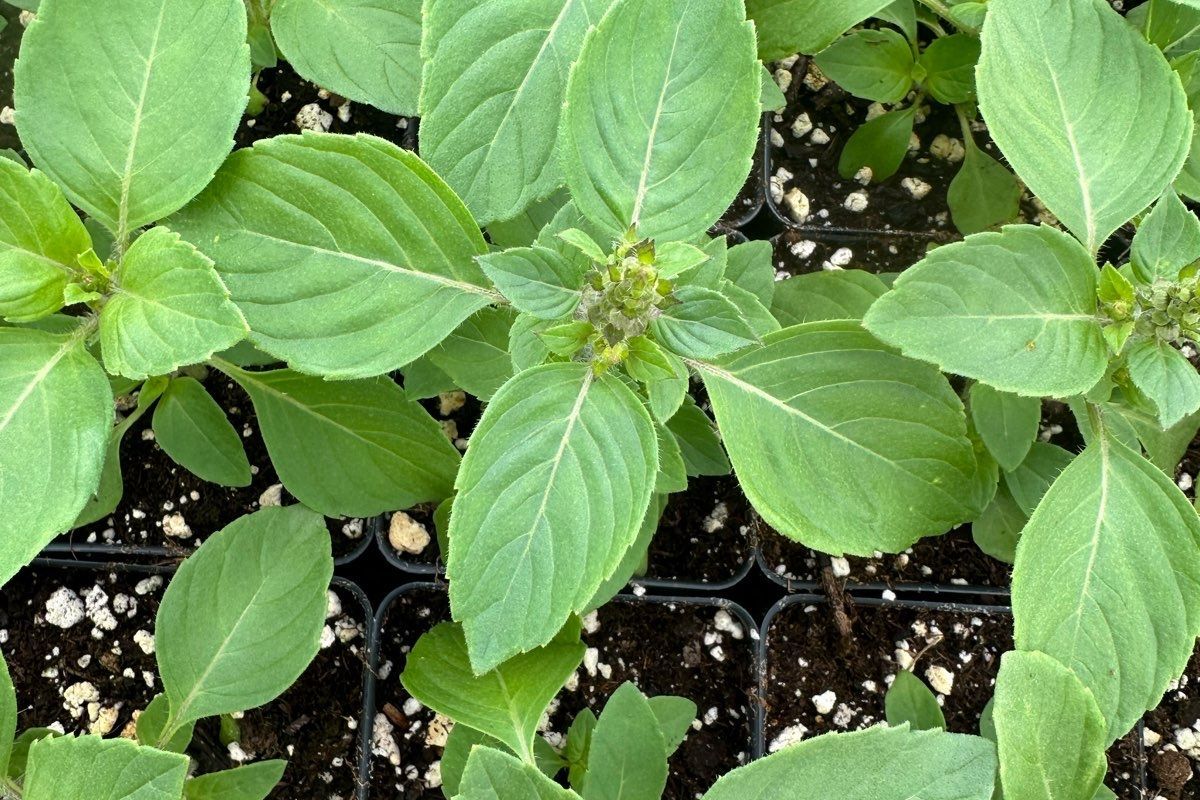 Tulsi or Holy basil is a fragrant medicinal herb that makes delicious tea.18-24” plants are bushy with lots of branches if harvested regularly. Beautiful ornamental as well. Full/ afternoon Sun.