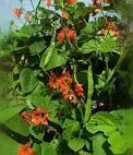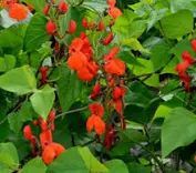 Scarlet Runner Beans grow a 8-10 foot Jack-in-the-beanstalk type vine that produces prolific scarlet flowers followed by long, flat, stringless green beans that can be eaten green or can be harvested dried. This is a fun one for a teepee or climbing up a deck. Full sun, good garden soil.