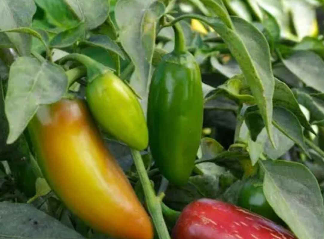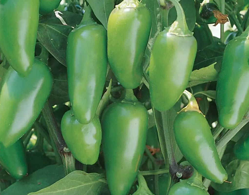 Jalapeño pepper plants produce medium-hot peppers that are usually picked green but become sweeter and hotter when they ripen to red. 24-36 inches tall , productive plant. Full Sun, good garden soil.
