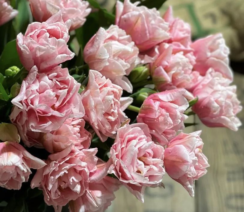 Supper fluffy light pink double blooms Stem Length: ~16"+ Photo Credit: Onings America
