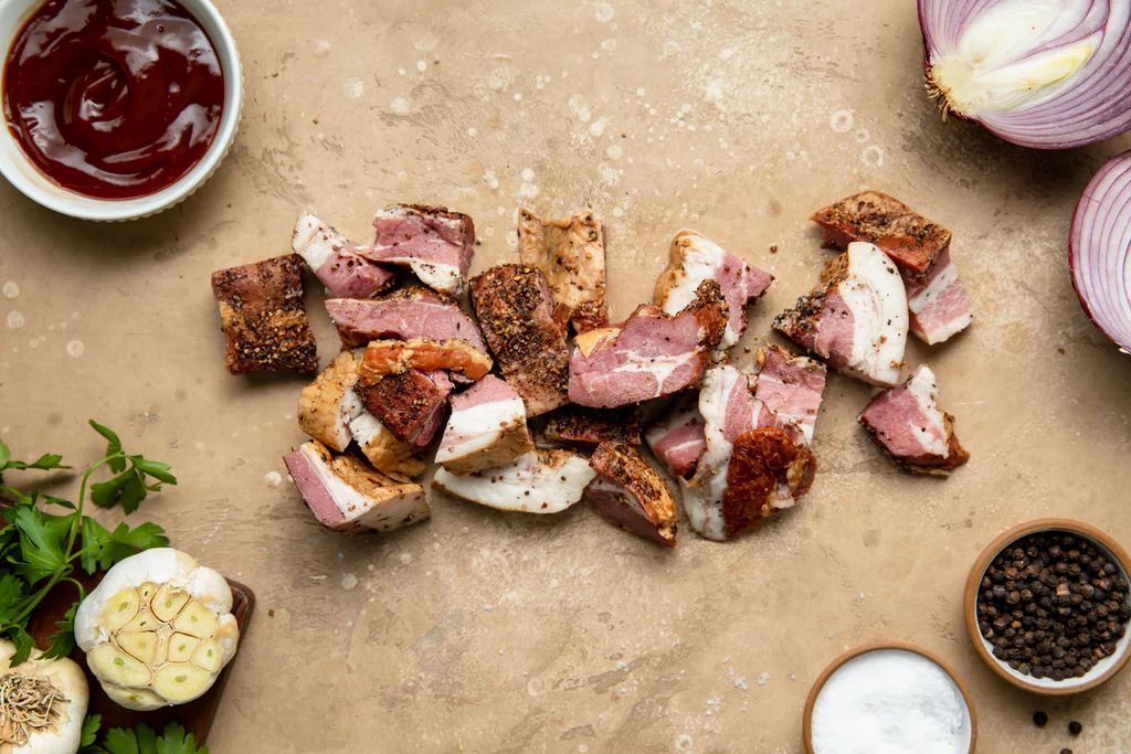 Bacon ends and pieces are the irregular, leftover trimmings from slicing whole slabs of bacon. Though imperfect in shape, they offer the same flavor as standard bacon but are more budget-friendly. Because they often have a higher fat content, they are rich in smoky flavor and are ideal for cooking, rather than eating as individual strips.