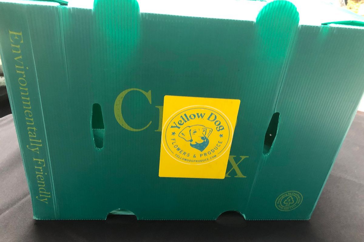 Our veggies come packed in a sturdy reusable green box. We pick up, clean and reuse the boxes each week. Please leave your boxes on your porch on Saturday morning (or at our farmstand.)
